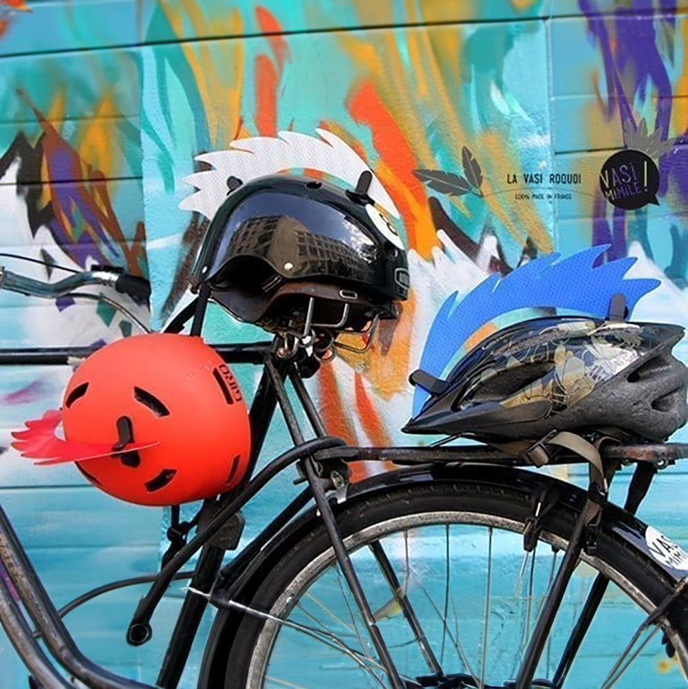 La Vasi’Roquoi est un accessoire qui se fixe sur ton casque de vélo ou de ski pour ajouter une touche décalée et améliorer ta visibilité. Avec son design fun et sa matière rétro-réfléchissante, elle te permet d’être mieux vu.e, sans te prendre au sérieux.
