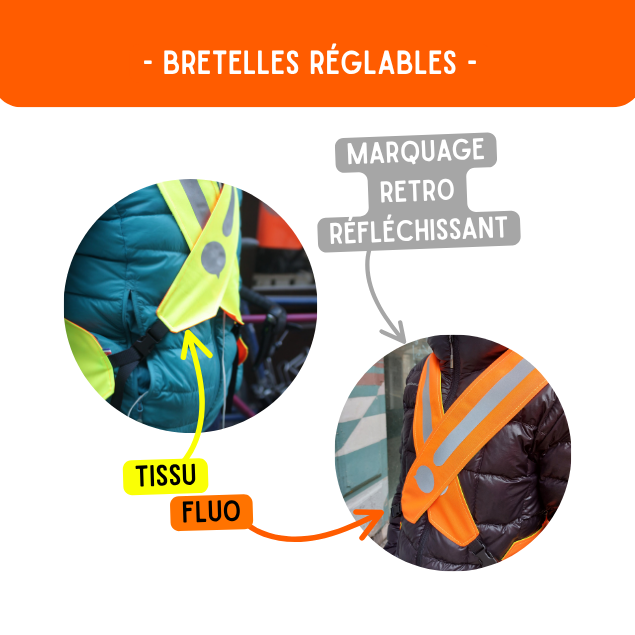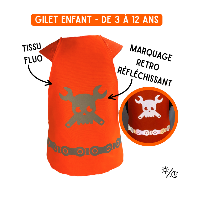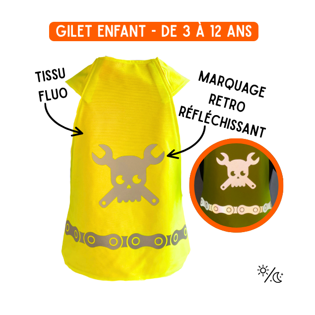Ătre visible, câest essentiel ! Avec le gilet de sĂ©curitĂ© Vasimimile, les enfants profitent dâun gilet fluo pratique et ludique pour leurs dĂ©placements Ă vĂ©lo, trottinette, Ă pied ou Ă cheval. LĂ©ger et confortable, il les accompagne partout de 3 Ă 12 ans.