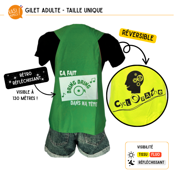 Le modèle Vasi'Izocel Reverso c'est deux faces, deux styles ! Ce gilet de sécurité vélo est réversible.