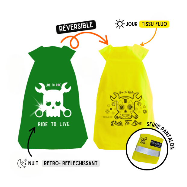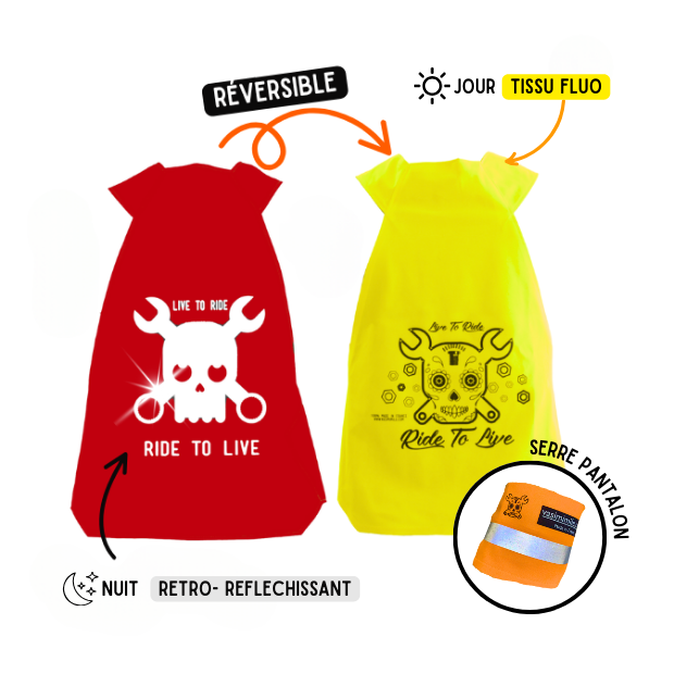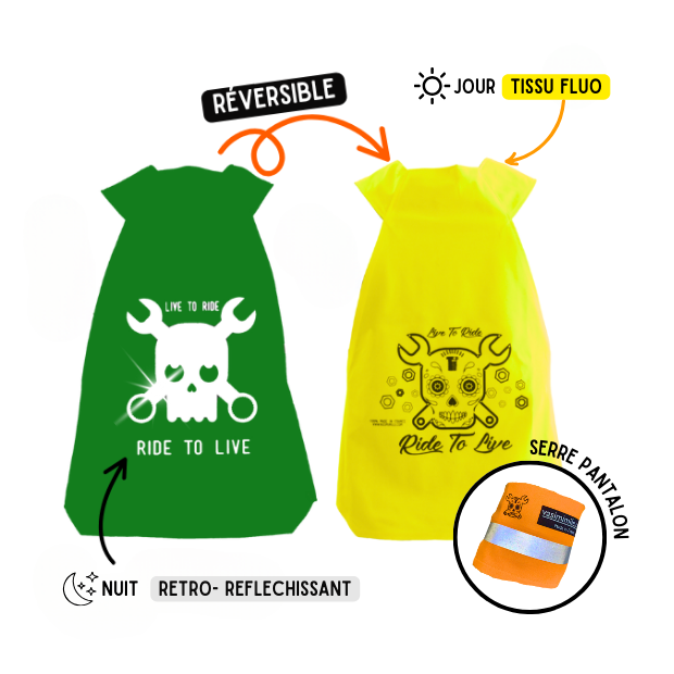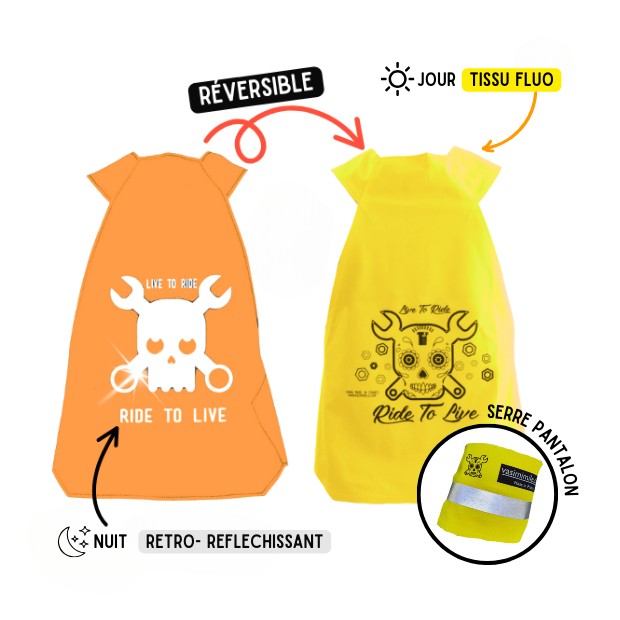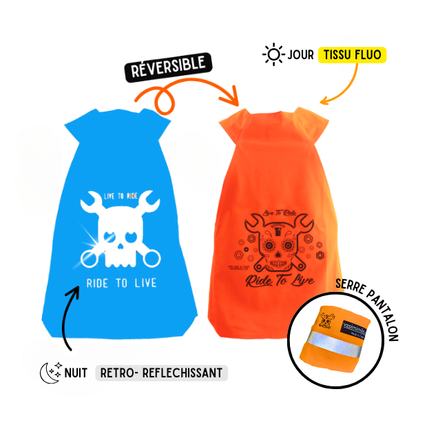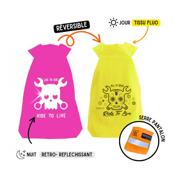 Pack VisibilitĂ© â Gilet Reverso + Serre-pantalon assorti
