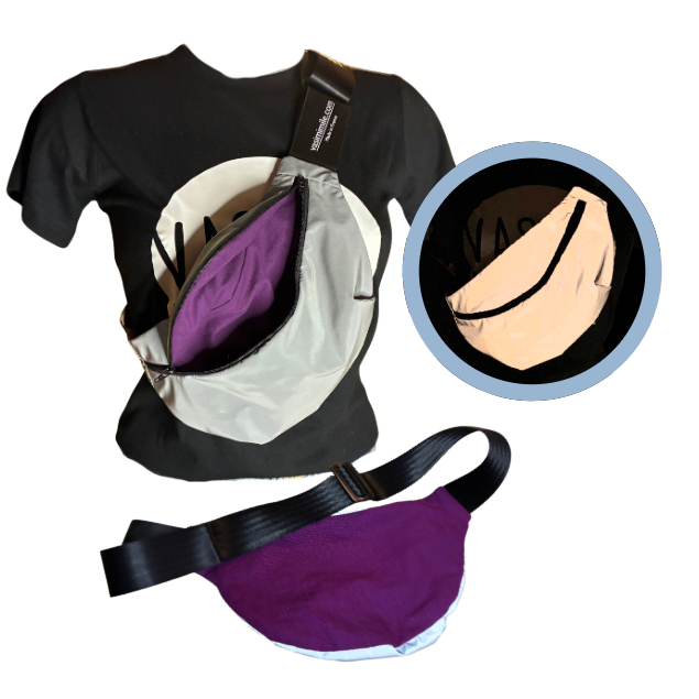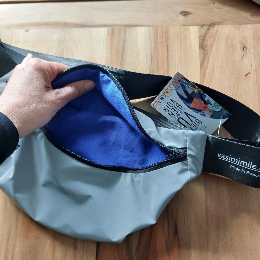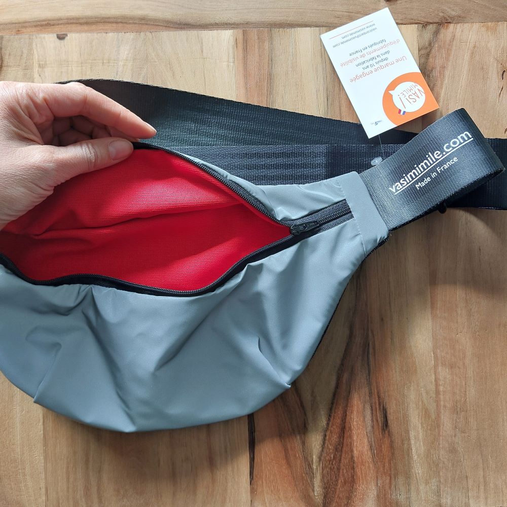 Avec son tissu rétro-réfléchissant et déperlant, le sac banane Vasi'Banana t’assure une visibilité optimale jusqu’à 130 mètres la nuit ✨👀