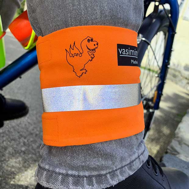 Le Vasi'Sertou c'est un serre-pantalon vélo fluo et rétro-réfléchissant