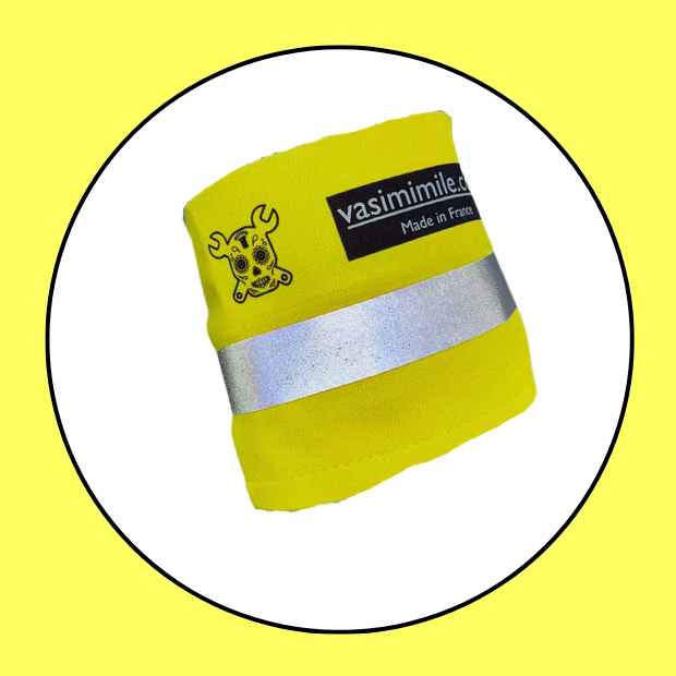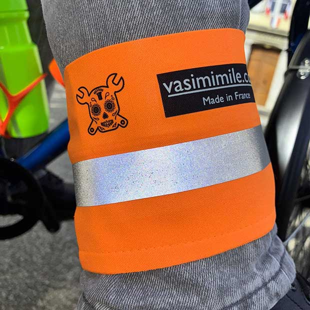 Le Vasi'Sertou c'est un serre-pantalon vélo fluo et rétro-réfléchissant