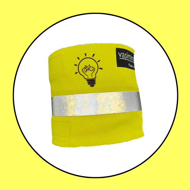 Le Vasi'Sertou c'est un serre-pantalon vélo fluo et rétro-réfléchissant