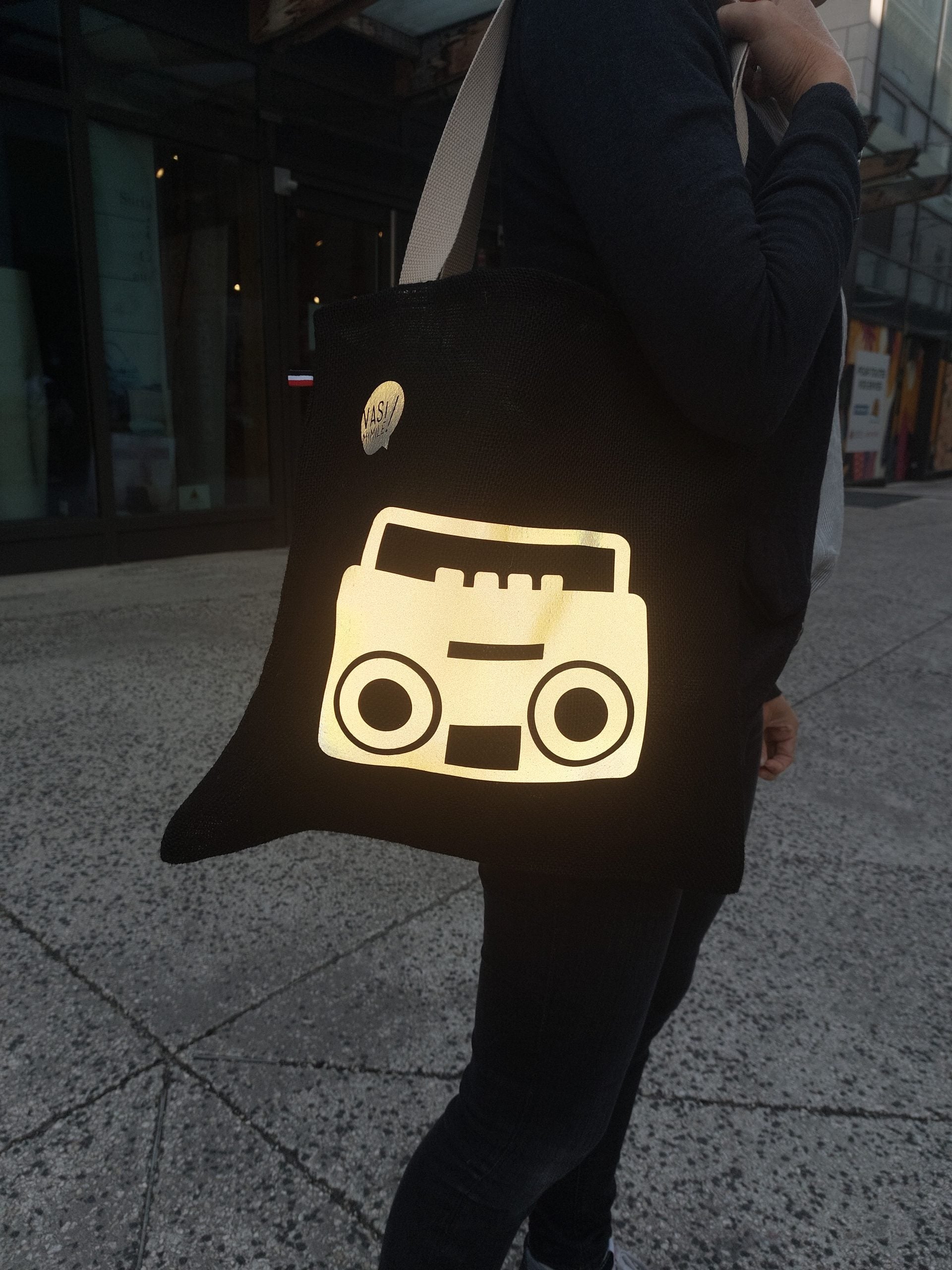 En toile de jute coloré avec un marquage rétro-réfléchissant. Ce totebag urbain vous garantie style et visibilité !