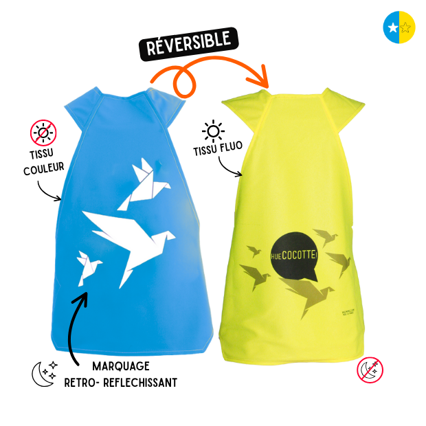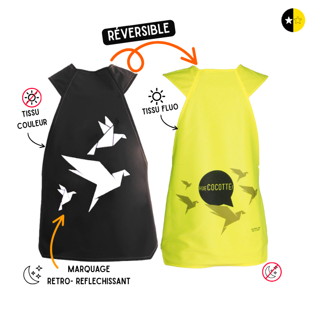 Le modèle Vasi'Izocel Reverso c'est deux faces, deux styles ! Ce gilet de sécurité vélo est réversible. Du fluo pour la journée, et du rétro-réfléchissant pour la nuit ✨