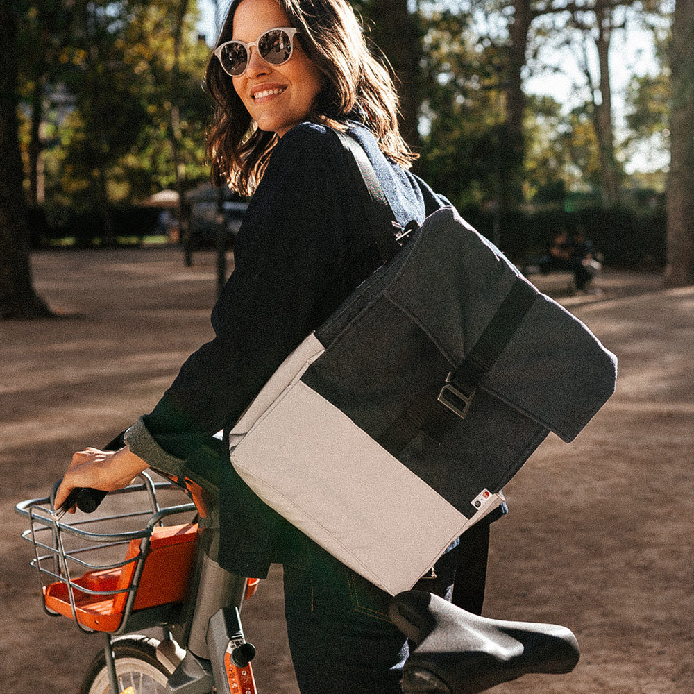 - Trois façons de le porter – sac à dos, bandoulière ou sacoche vélo