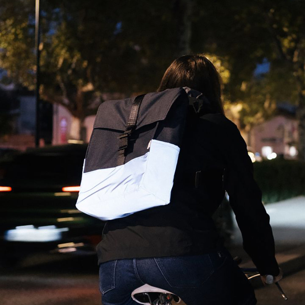 Un sac à dos fabriqué en France, c’est déjà rare. Un sac rétro-réfléchissant, conçu pour la mobilité et fabriqué avec des matériaux surcyclés, encore plus !